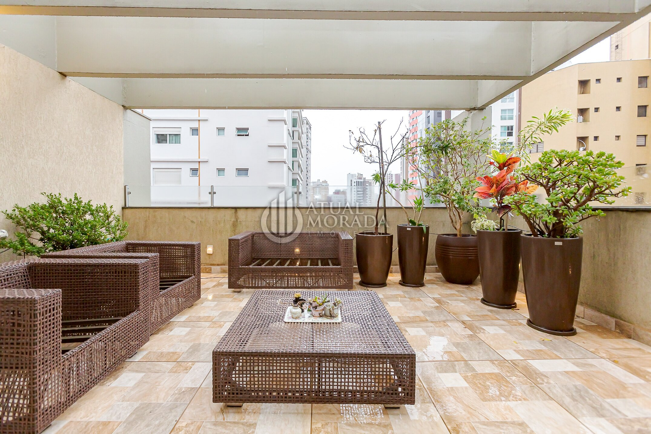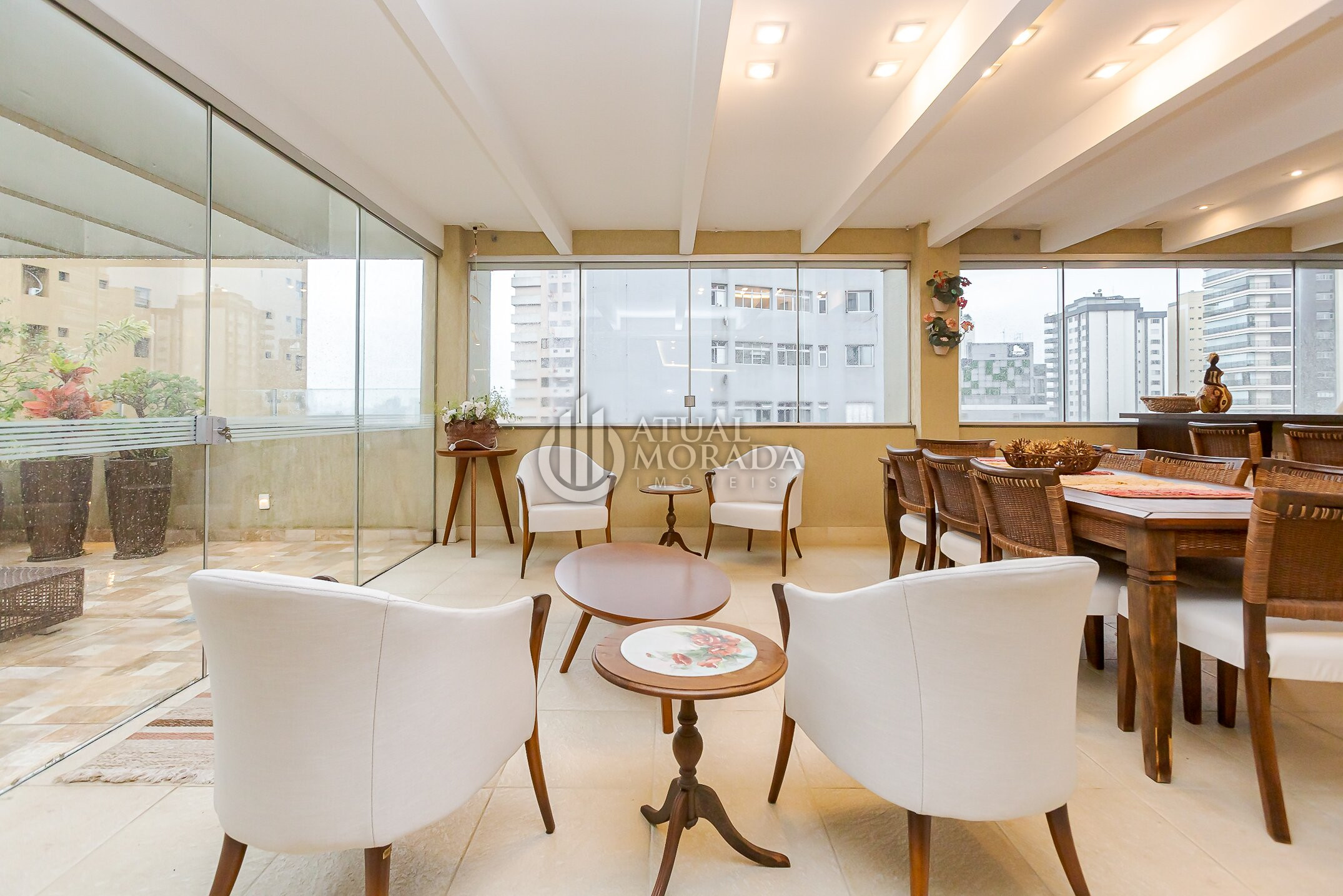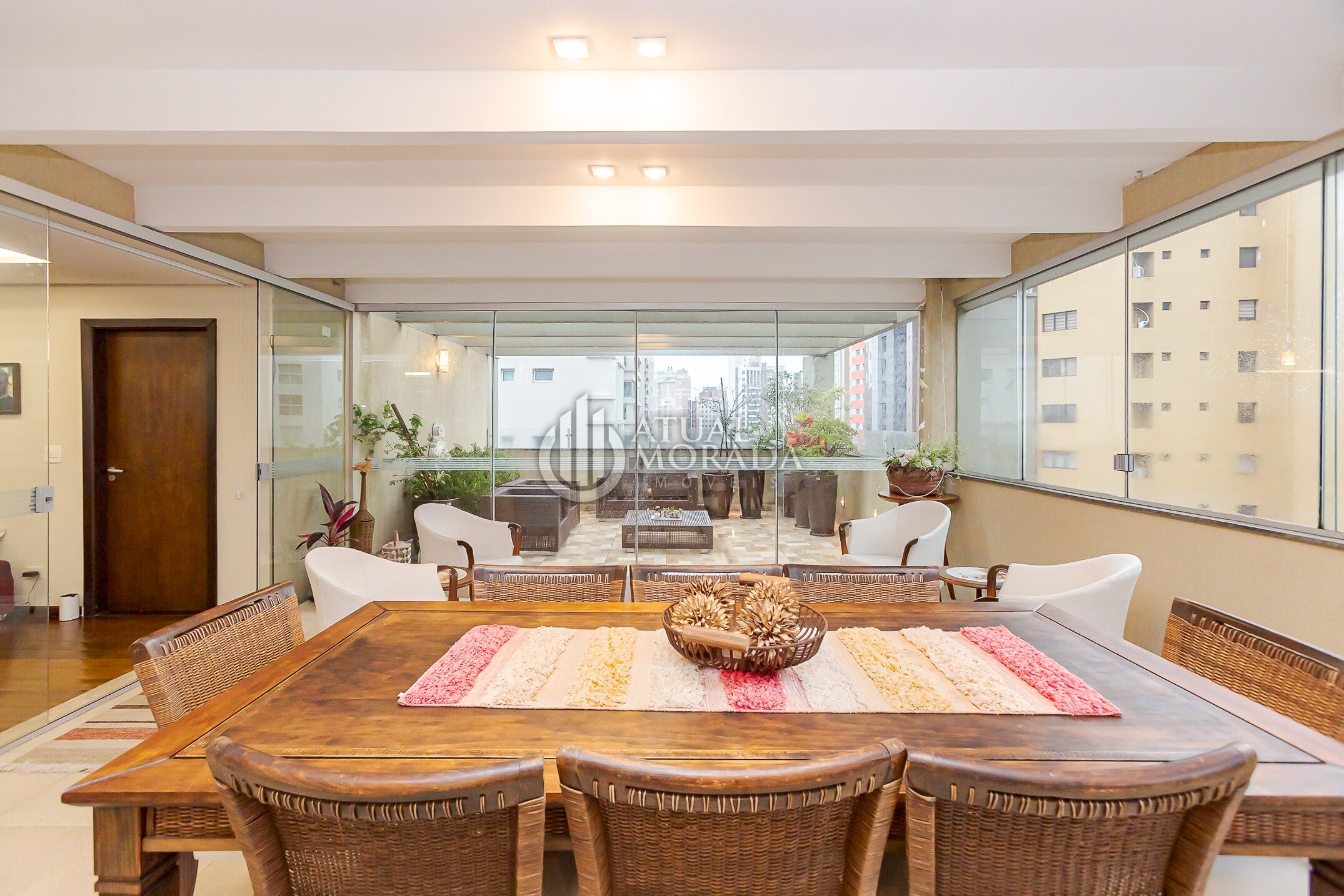 Além disso, conta com uma área externa fechada em vidro, proporcionando uma vista privilegiada para a Praça do Japão, com muita luz natural e sensação de amplitude.